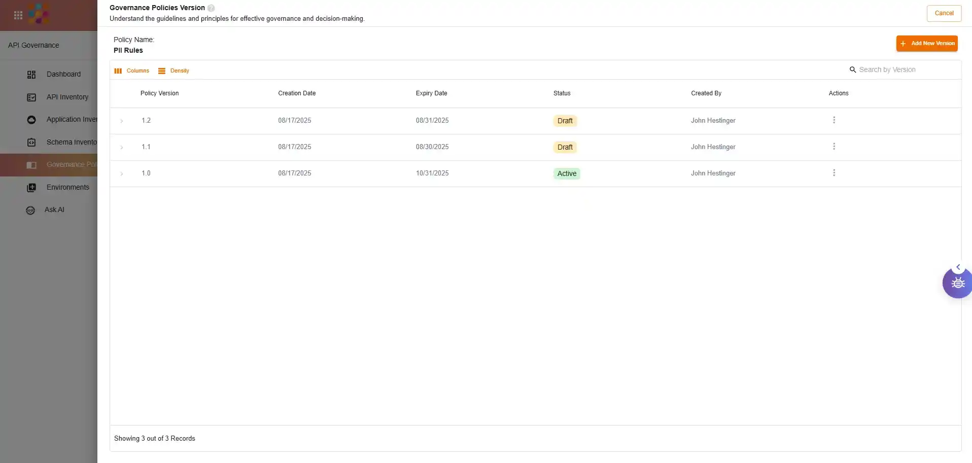 Track APIs through every stage from draft to deprecated and manage multiple versions without confusion.