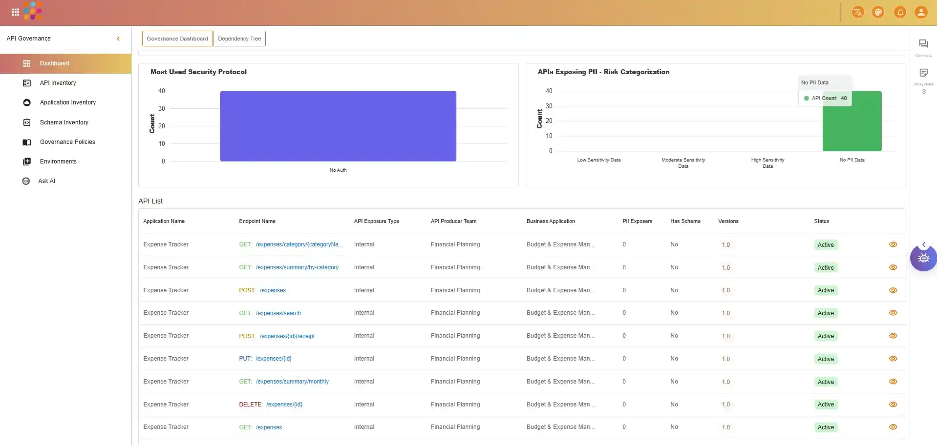 Get a complete view of your APIs — track versions, schema status, usage, and security insights in one central dashboard.