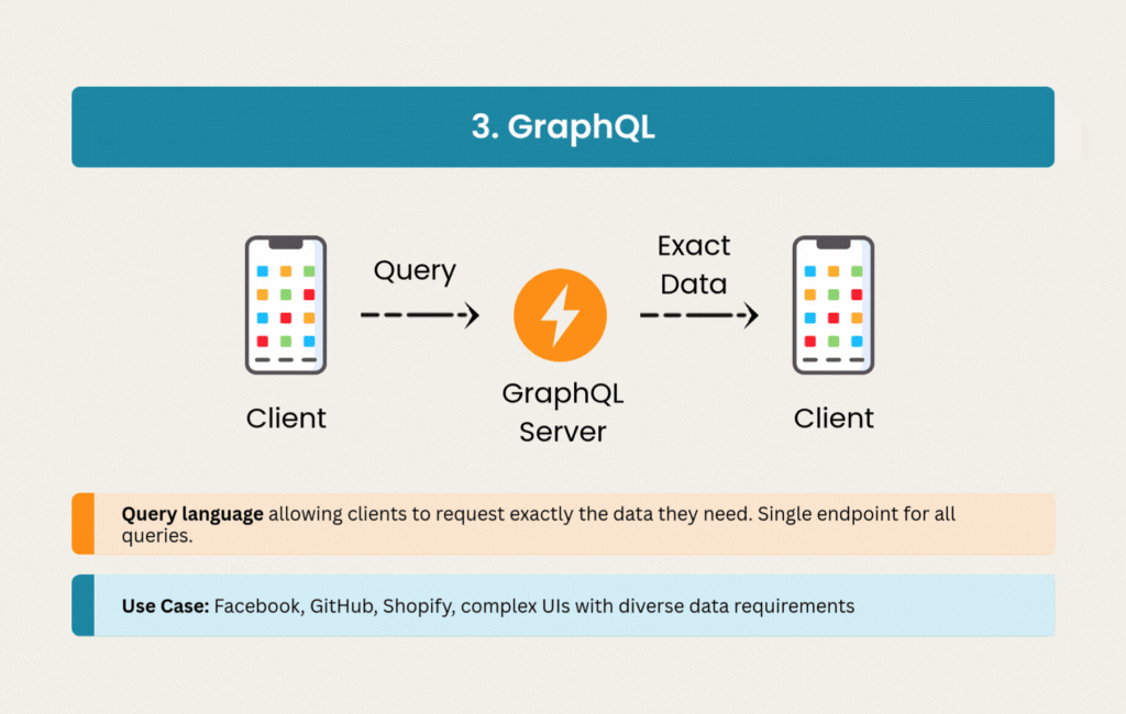 REST became the default choice for web APIs for good reason. It’s straightforward, using standard HTTP methods that most developers already understand. The stateless architecture scales well, and built-in caching mechanisms improve performance without extra work.