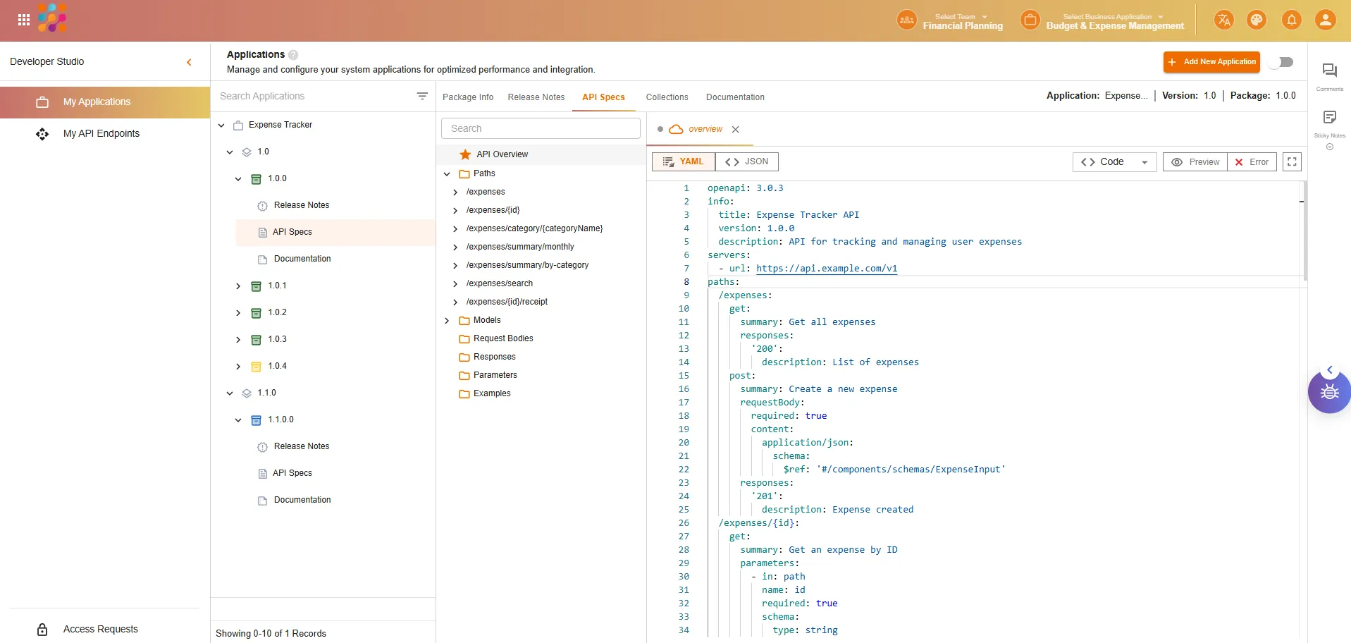 Create and update OpenAPI 3.0 specifications using either a structured form or a raw YAML/JSON editor. Maintain flexibility for all levels of technical users.