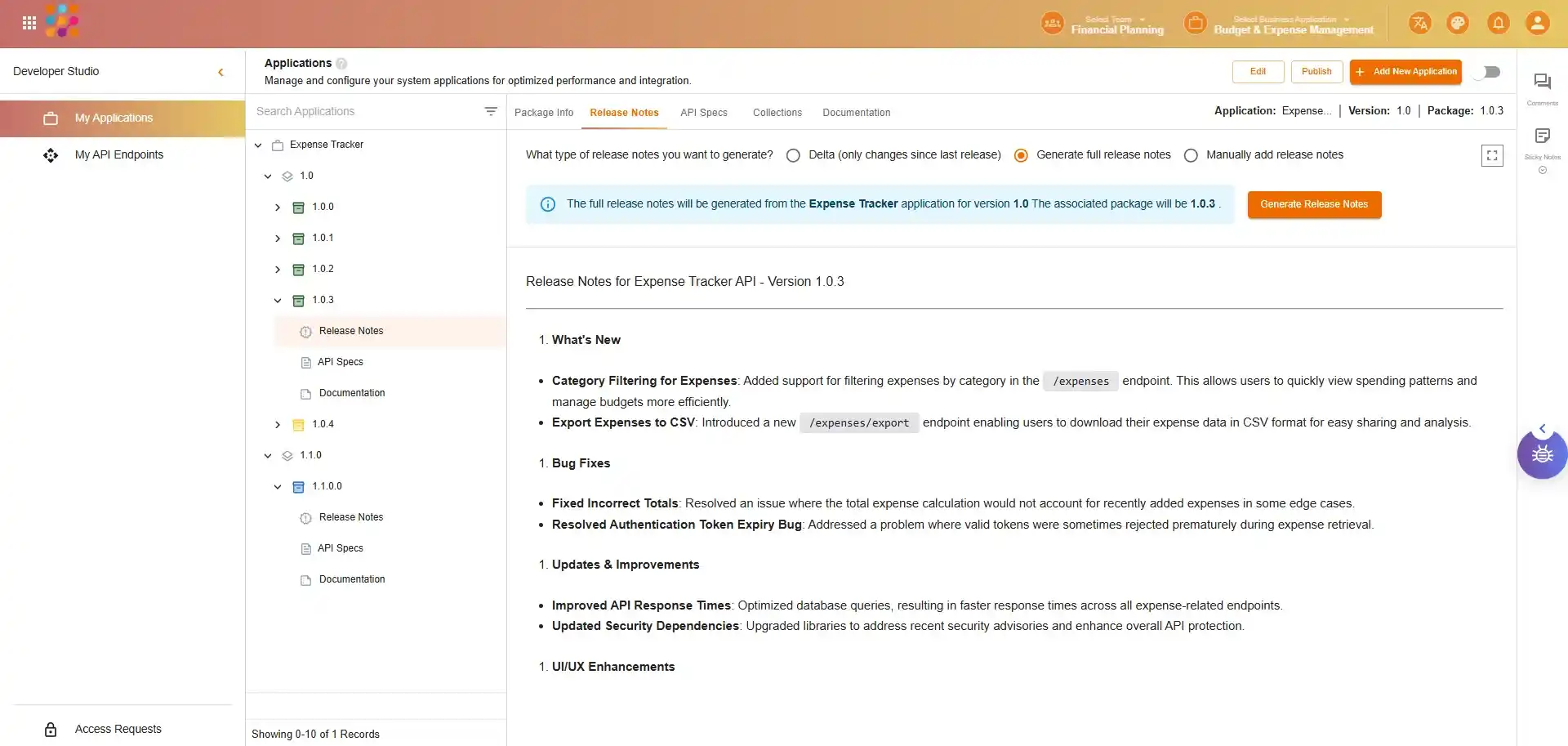 Automatically generate changelogs for API packages—documenting new features, bug fixes, and breaking changes to ensure transparency and collaboration.