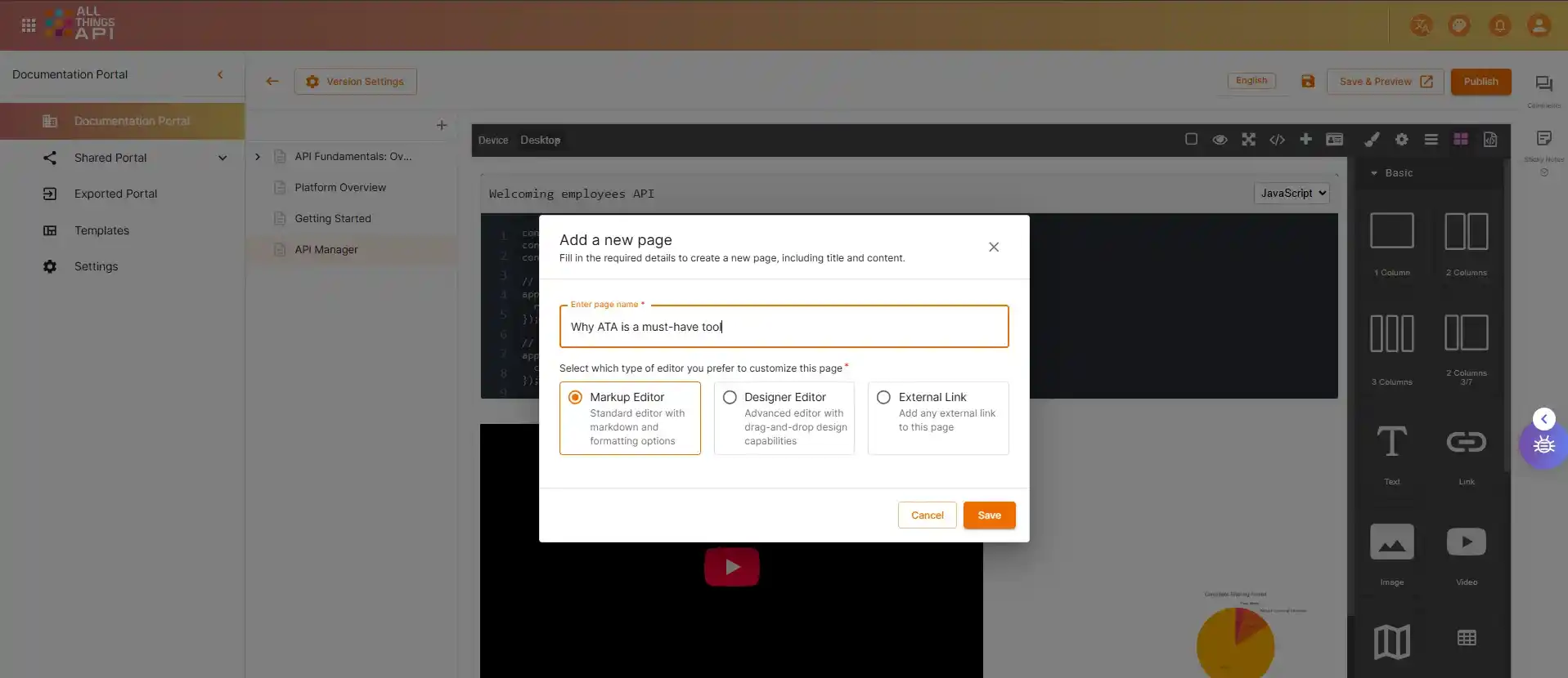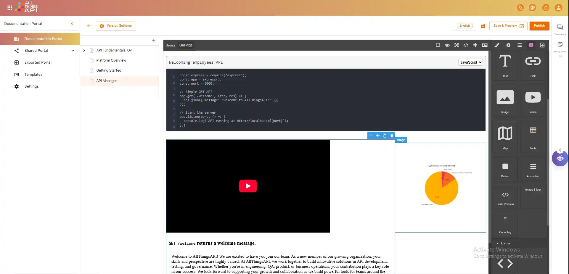 Build and design pages visually with reusable blocks like text, images, videos, buttons, accordions, and more.