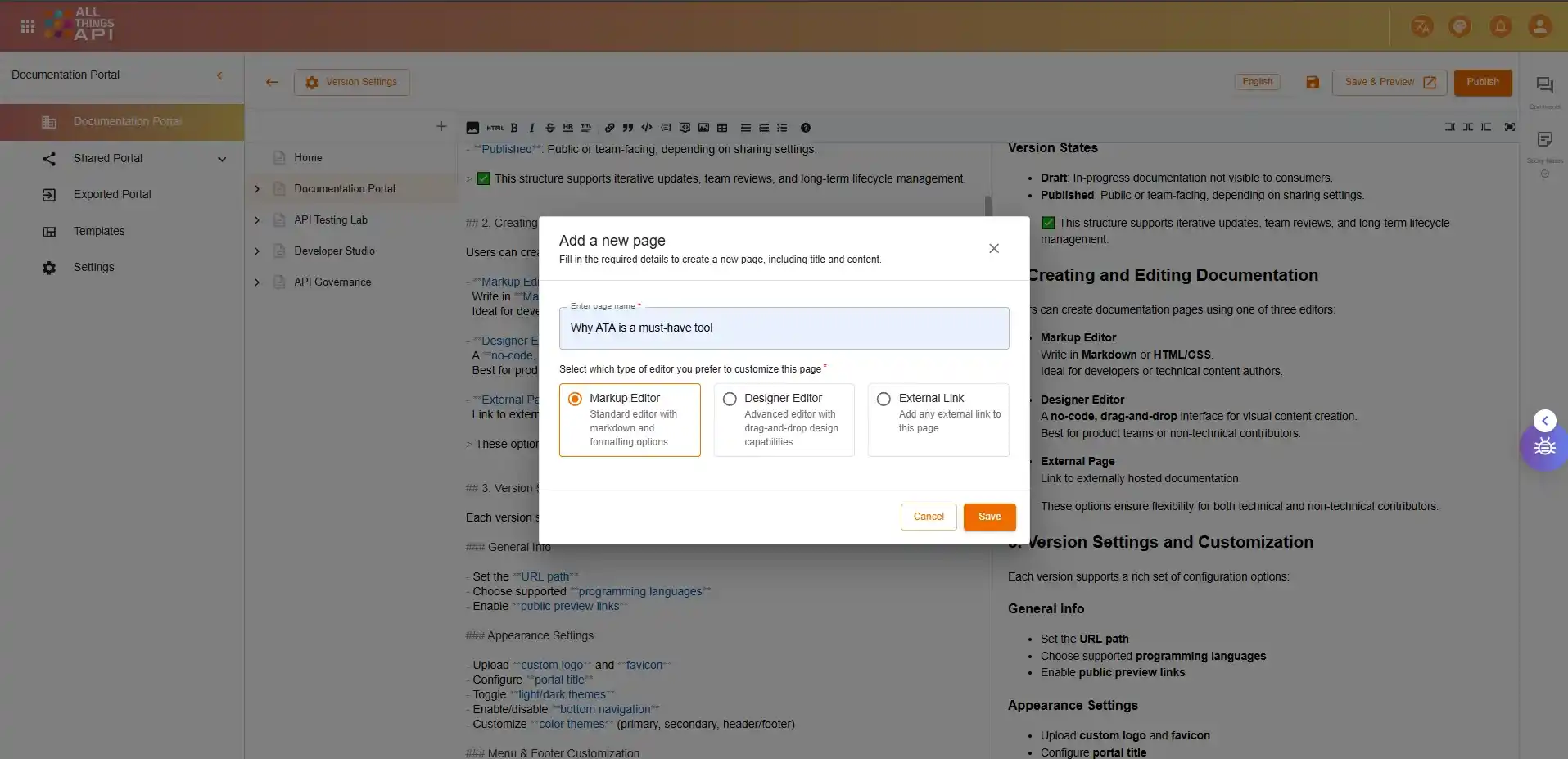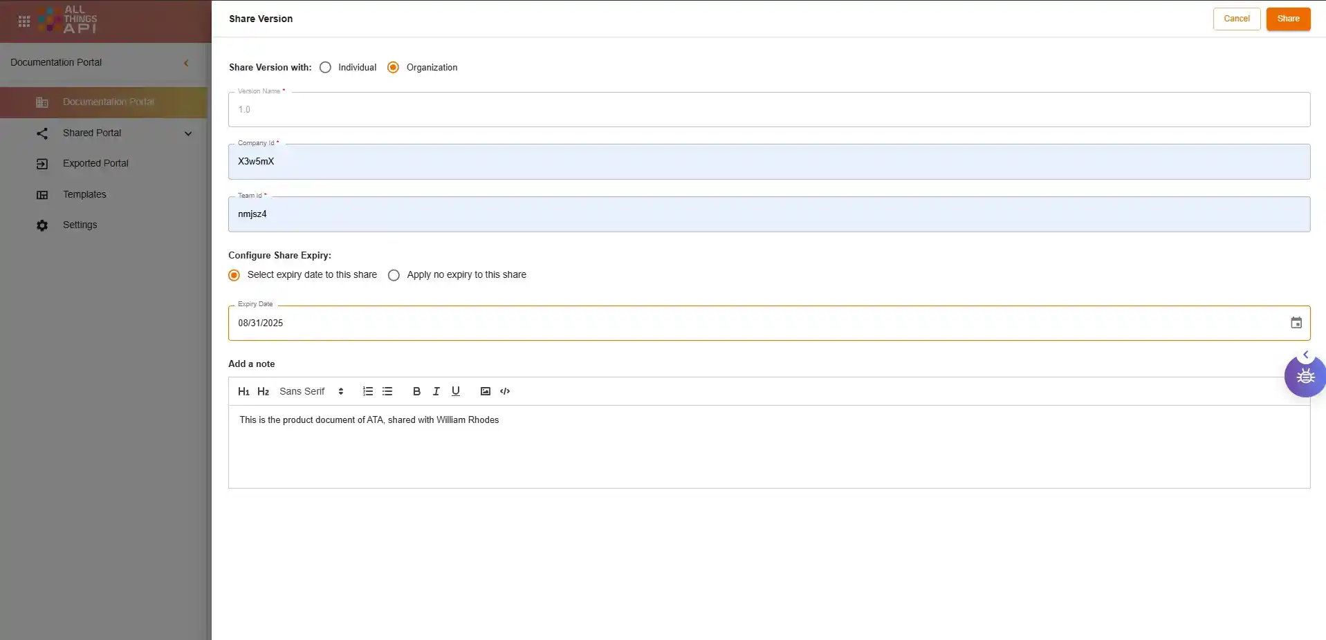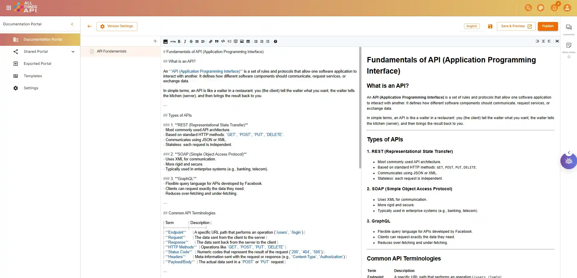 Preview documentation in real-time and share it publicly or privately with internal teams and external users.